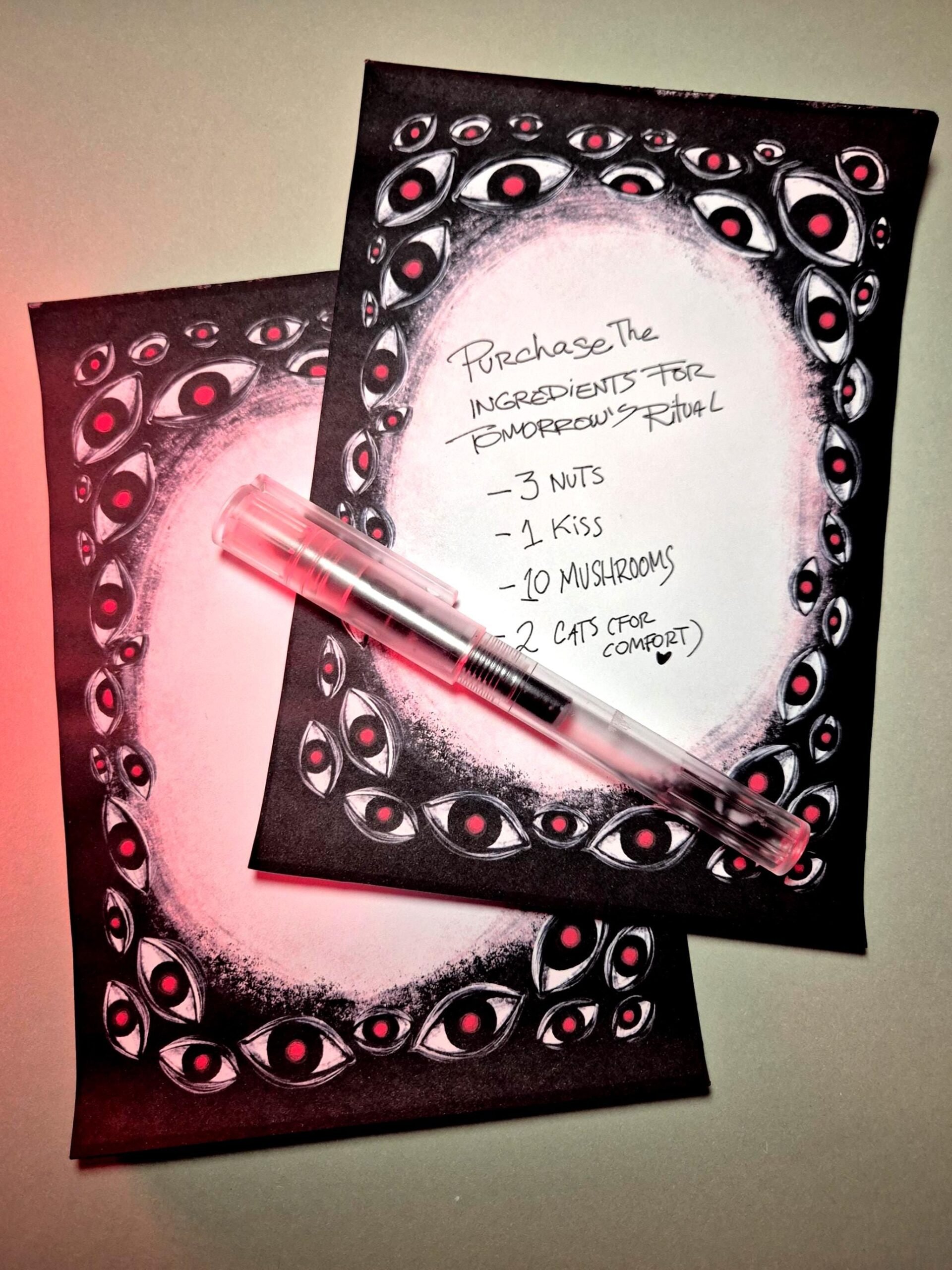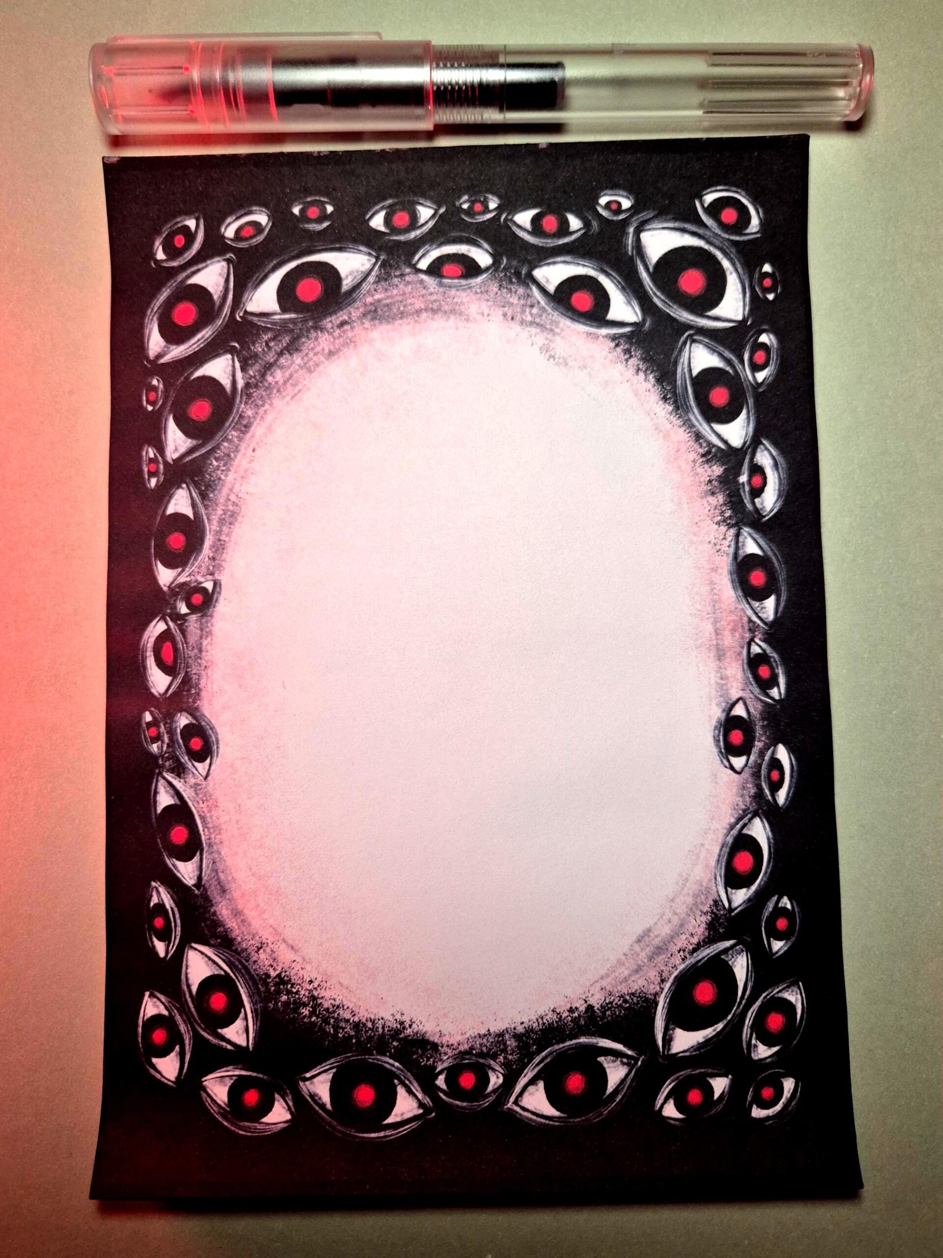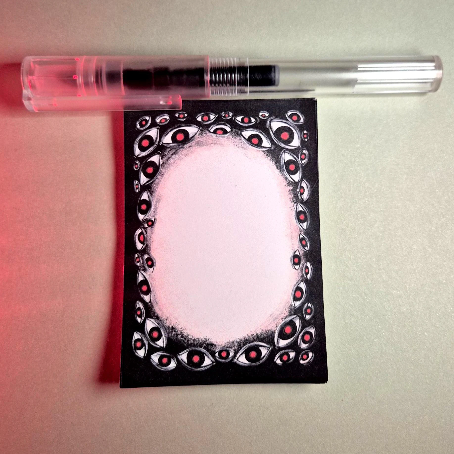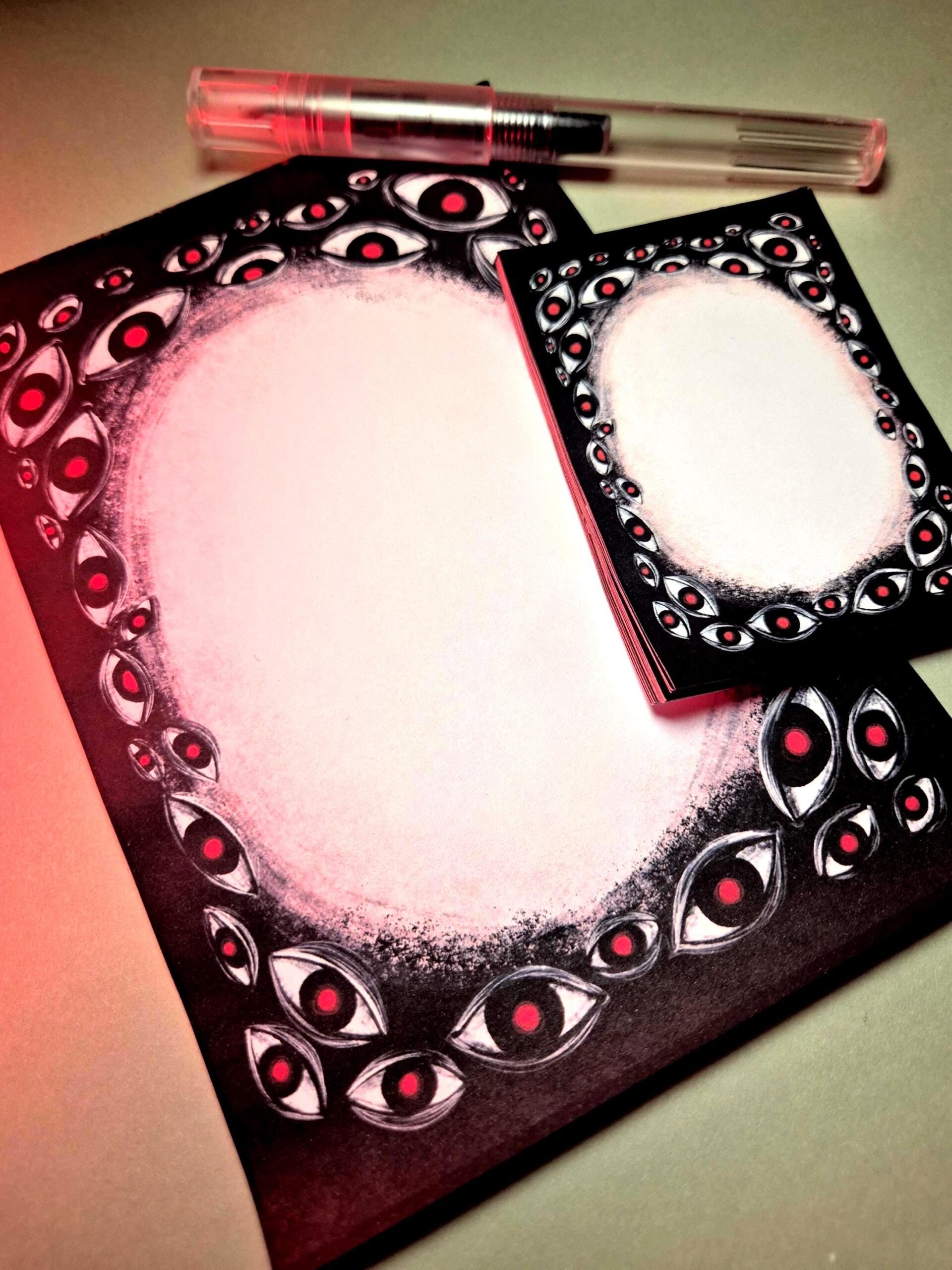 Summon inspiration with this chilling horror notepad, ringed in hypnotic all-seeing eyes, perfect for scribbling secrets, sketches, or unholy to-do lists. Human illustrated for fans of the weird and uncanny, this gothic stationery makes every note feel like a cosmic ritual.