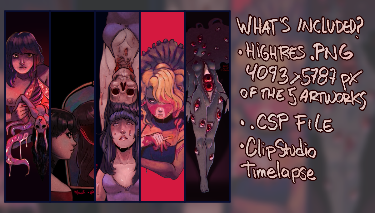 - Full version of the 5 artworks, high-resolution .PNG (4093x5787pixels)