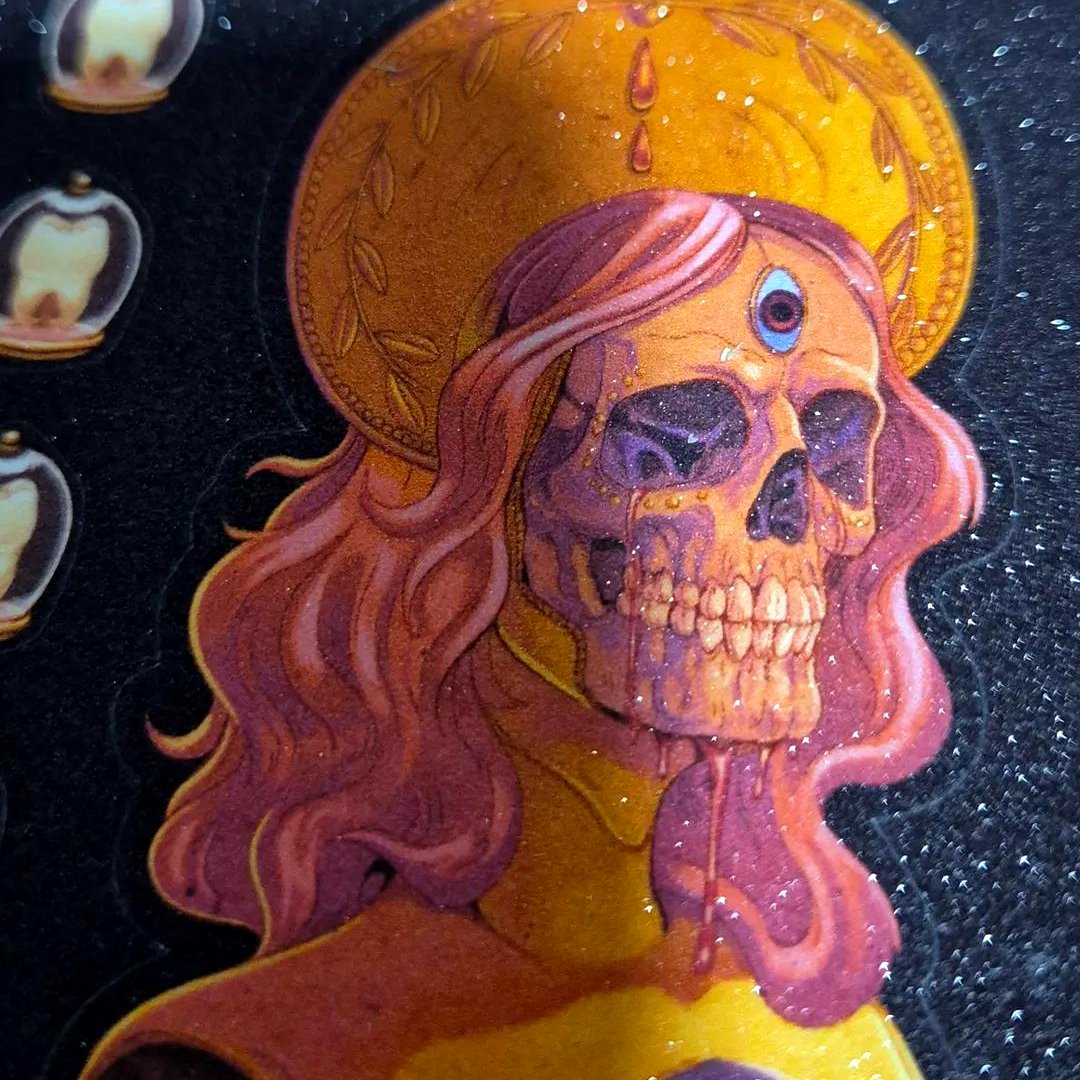 The Occult Relic Sticker Sheet is a dazzling collection of sacred oddities and mystical fragments, illustrated in rich reds, golds, and eerie violets. Inspired by old reliquaries, body horror, religious icons, and anatomical dolls, this limited edition set brings together spiritual beauty and surreal discomfort in one beautifully cursed composition.