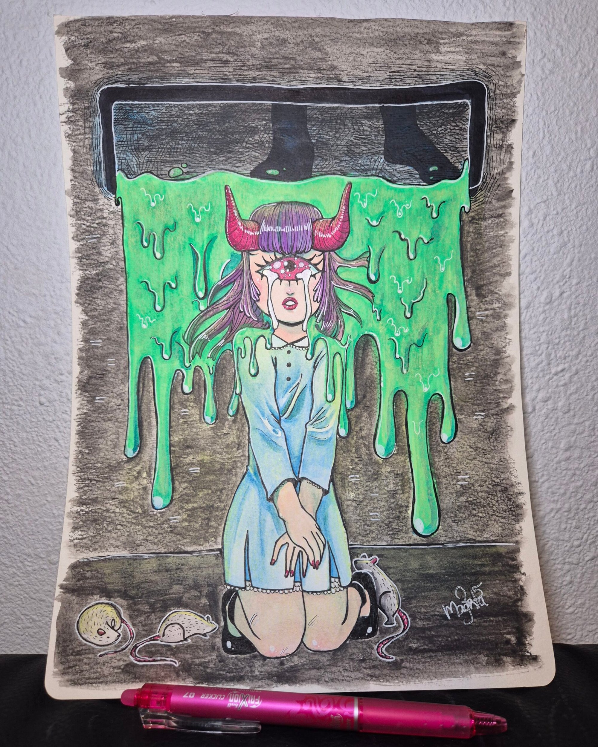Painting with watercolor, gel pens, ink pens on 240g/mยฒ Watercolor paper