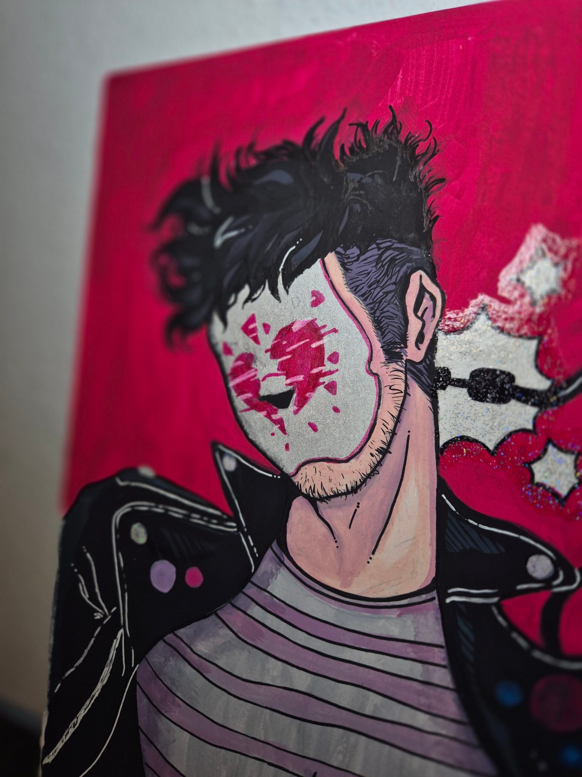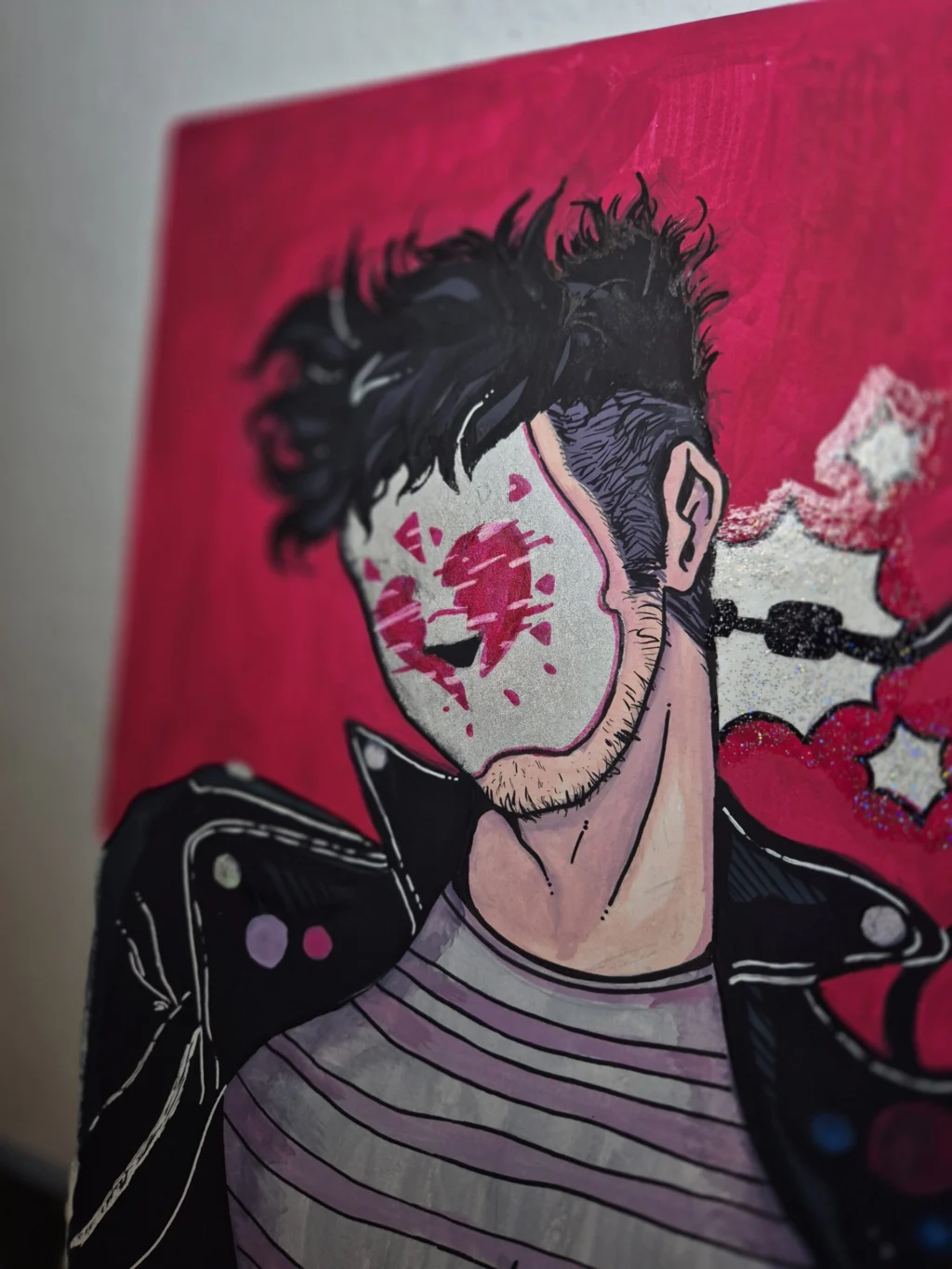 Painting with marker, watercolor, gouche and glittery nail polish on 300g/mยฒ Watercolor paper