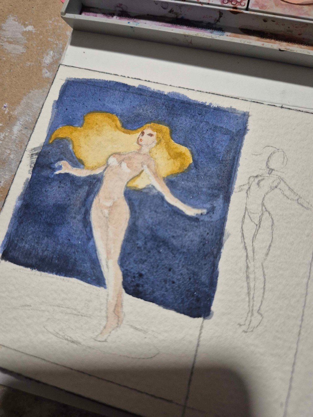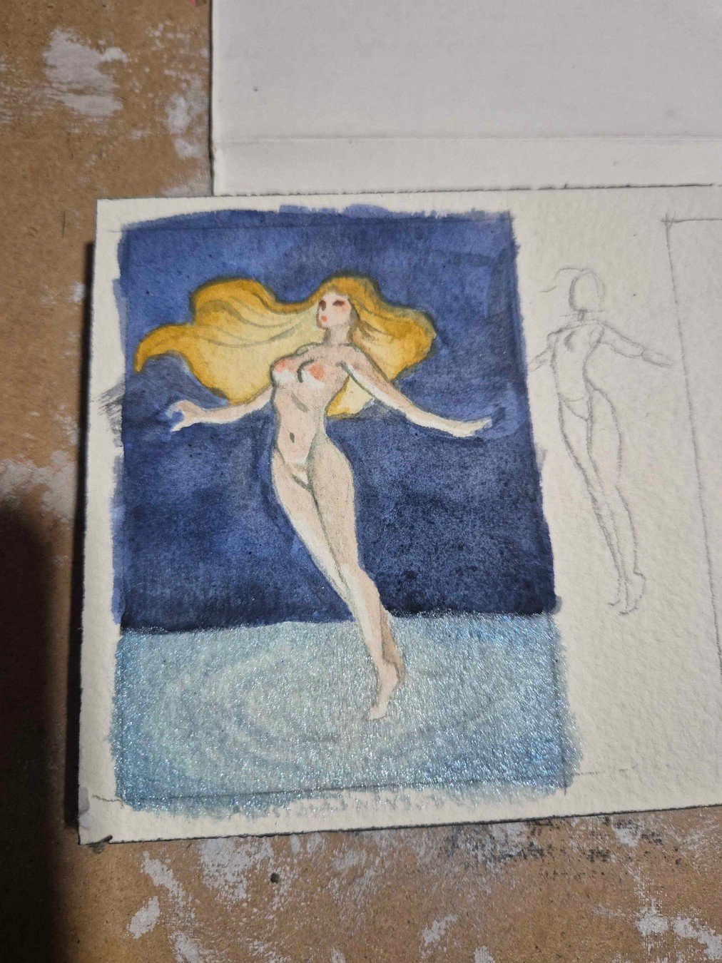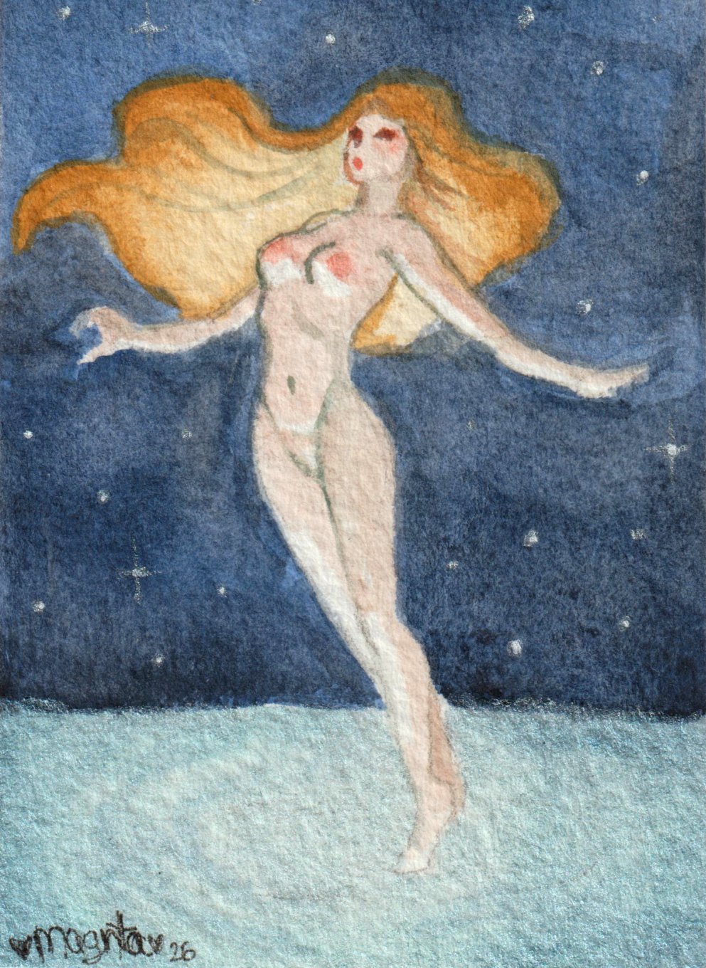 This original miniature painting is ideal for collectors of ACEO art, watercolor originals, fantasy artwork, and small traditional paintings. It works beautifully for anyone drawn to celestial imagery, ethereal figures, dreamlike scenes, or handmade miniature art with a quiet magical atmosphere.